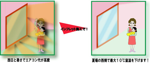 この赤外線を80パーセント以上遮蔽するのが、透明タイプ熱遮蔽フィルム【インフレット】です。